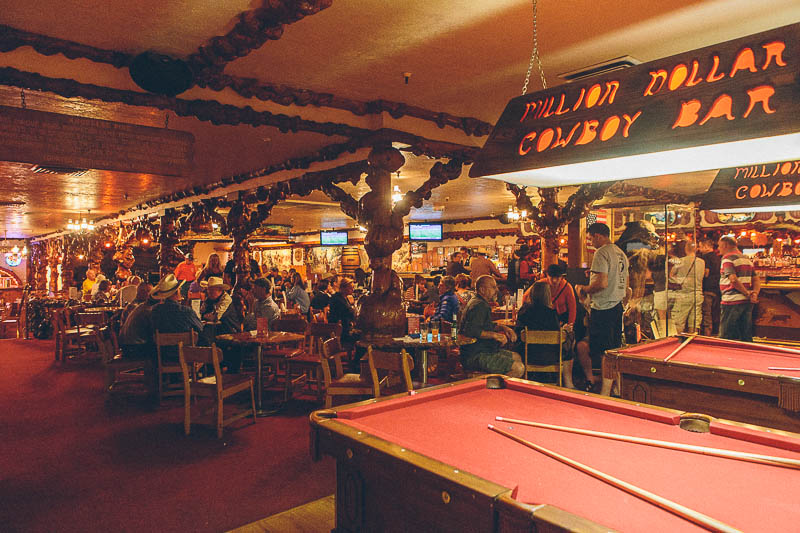 There are velvety pool tables, an entire gift shop and a shoe shiner who was polishing a real cowboy's boots. It was hard to tell if this place was serious or joking. Was it the Disneyland stereotypical cowboy bar that they thought tourists expected or is this place the real deal? Considering it's been around since the 1890s, I would guess the latter.